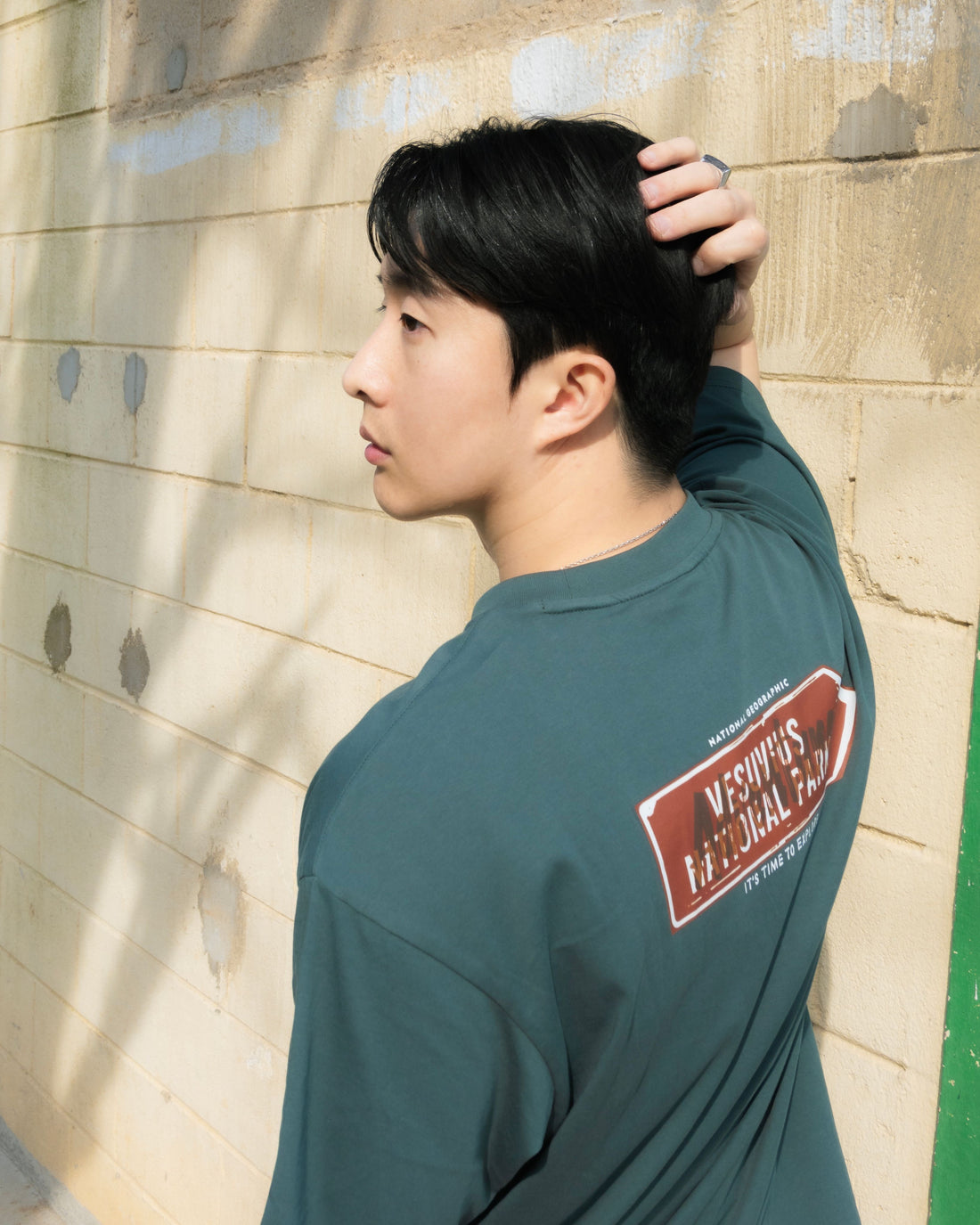 UNISEX TREASURE SIGNPOST SEMI-OVER FIT GRAPHIC H/TEE- D/GREEN