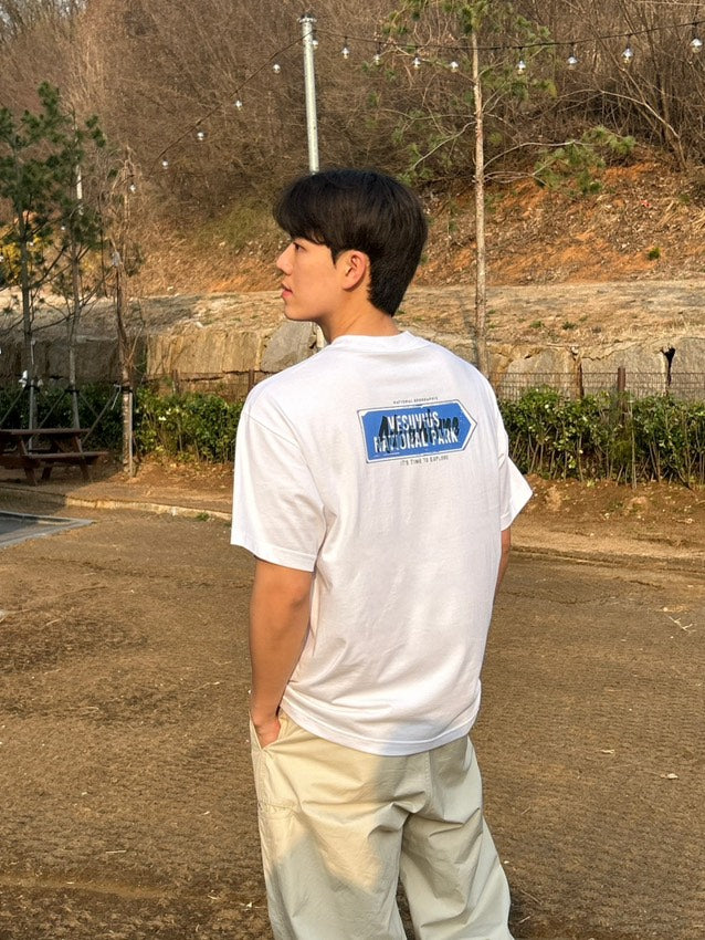 UNISEX TREASURE SIGNPOST SEMI-OVER FIT GRAPHIC H/TEE- WHITE