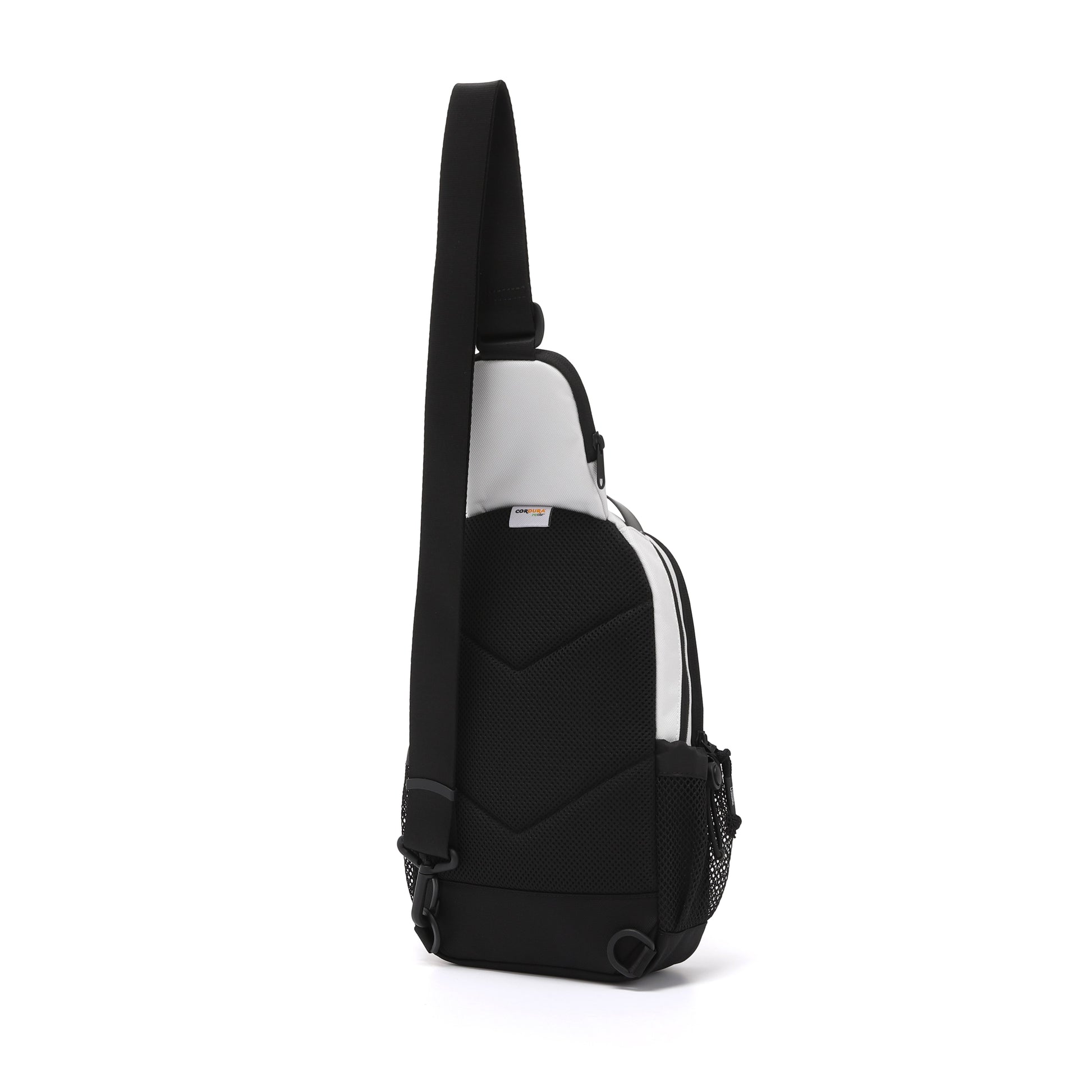 - Bold logo sling bag featuring a prominent vertical logo detail on the front for a standout look.