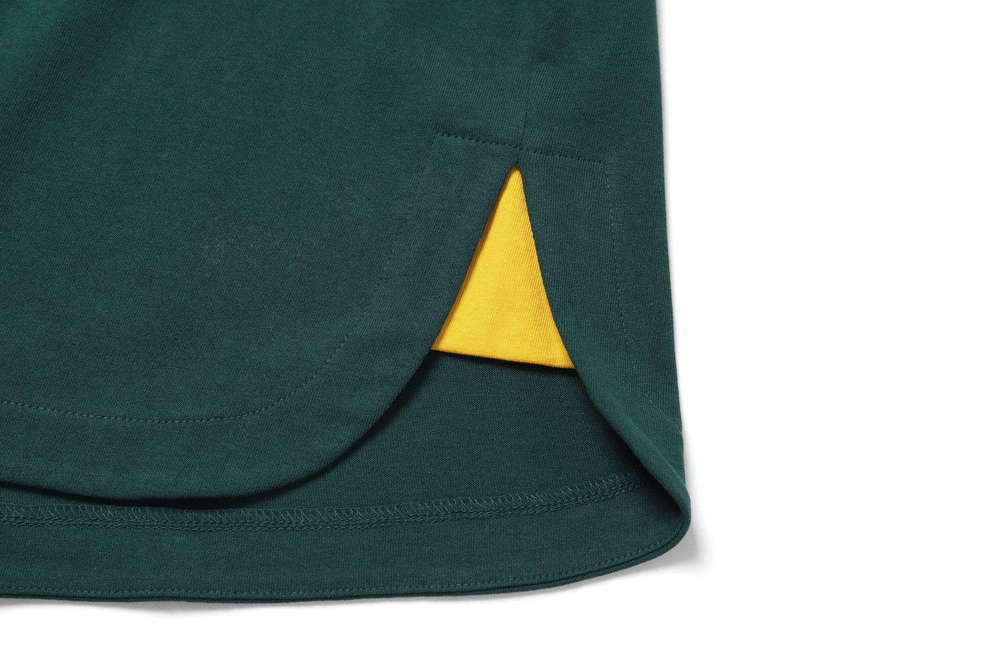 - Round hem and side slits with neckline binding