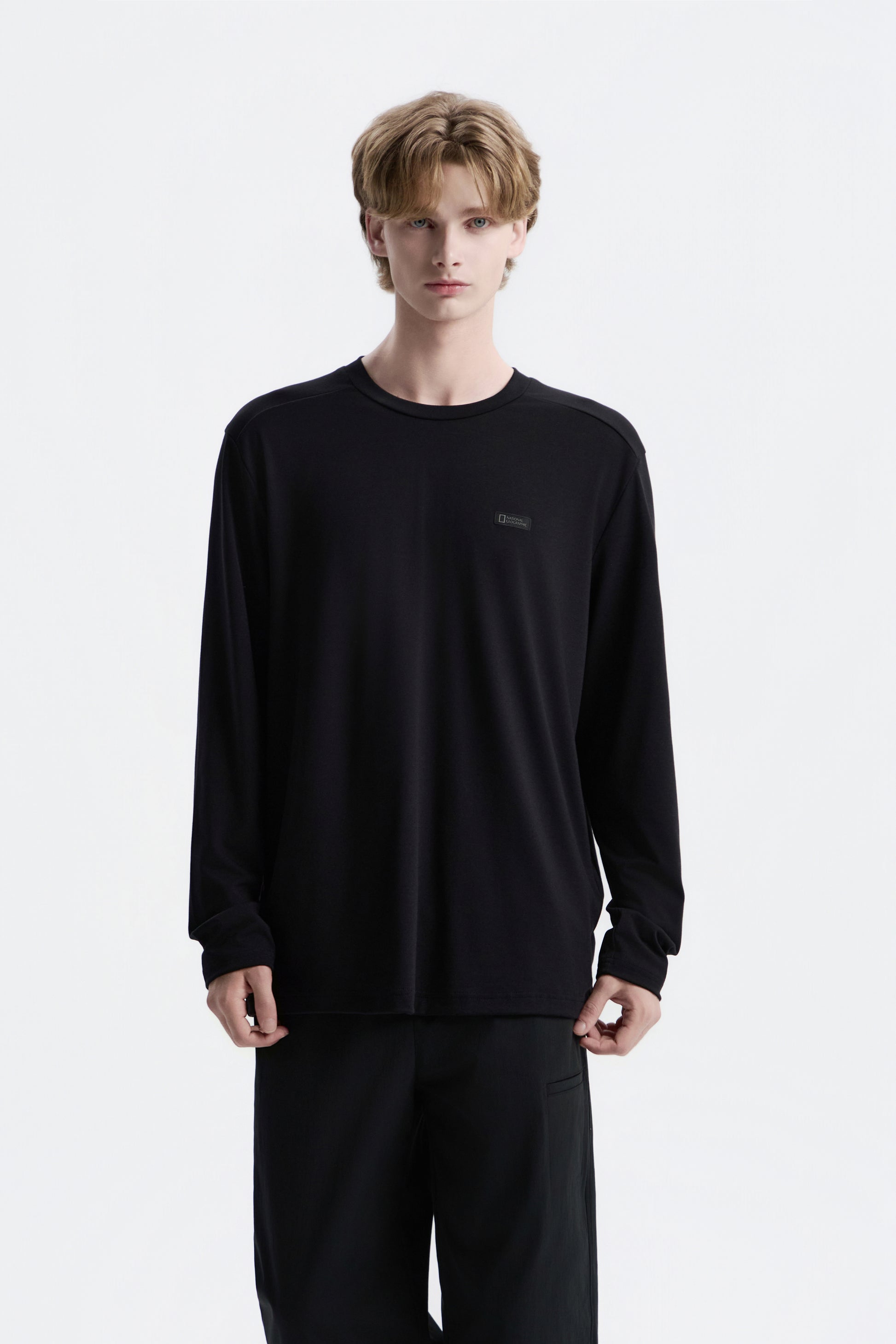 - Basic-fit long-sleeve t-shirt featuring Aerowarm functionality for lightweight warmth and comfort