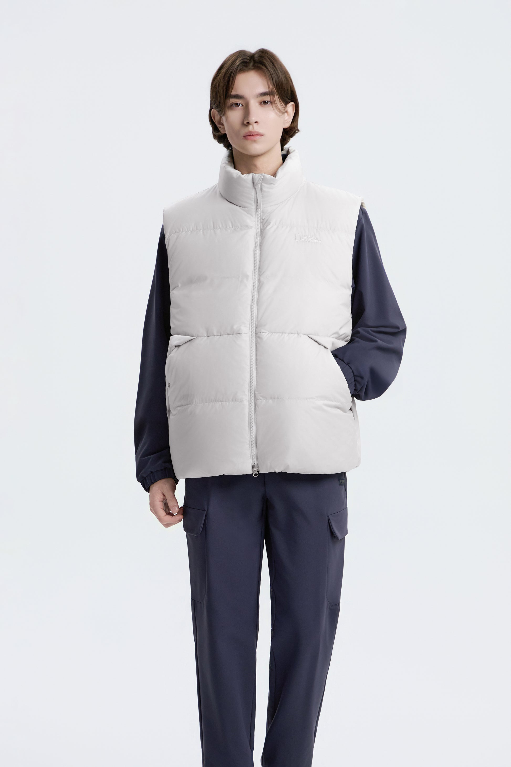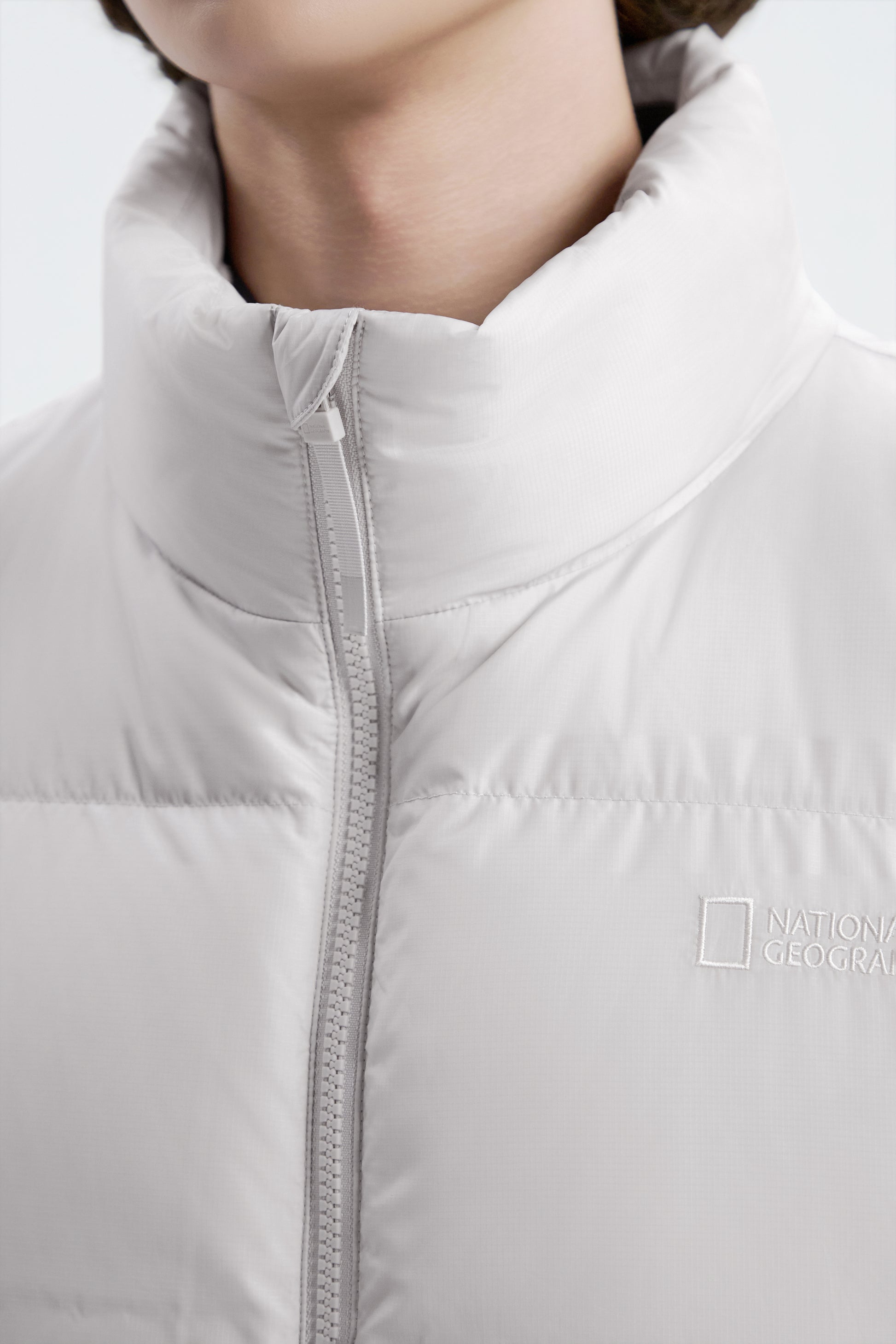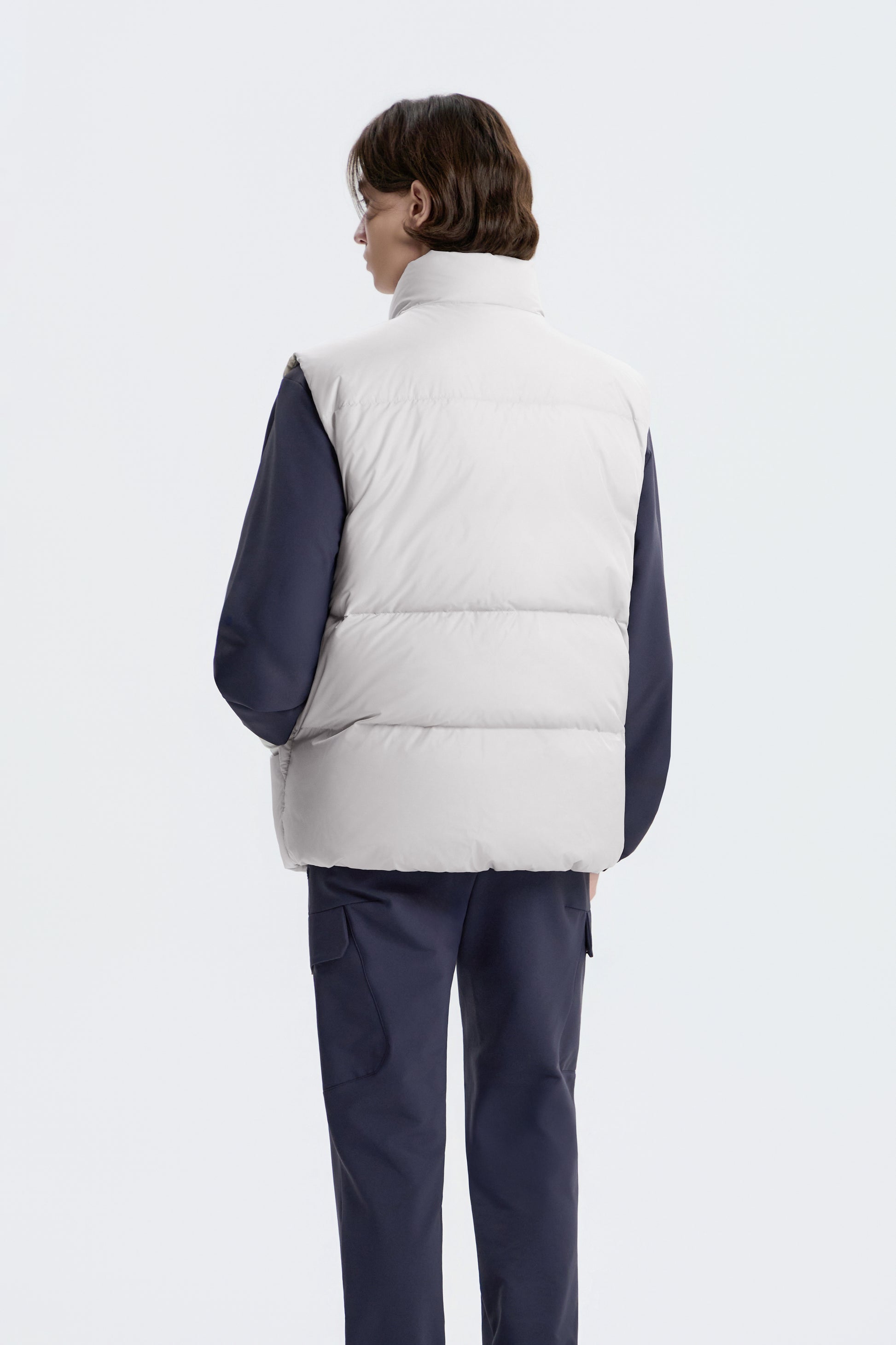 UNISEX EIRA HIGH-NECK PUFFER GOOSE DOWN VEST- L/GREY