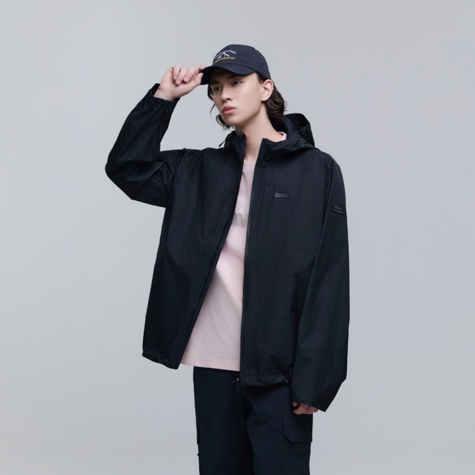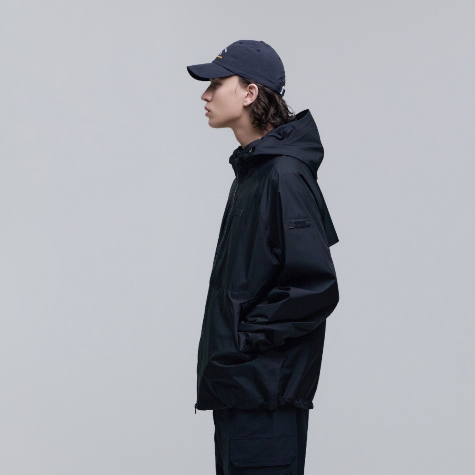 - Logo patch detail on the sleeve