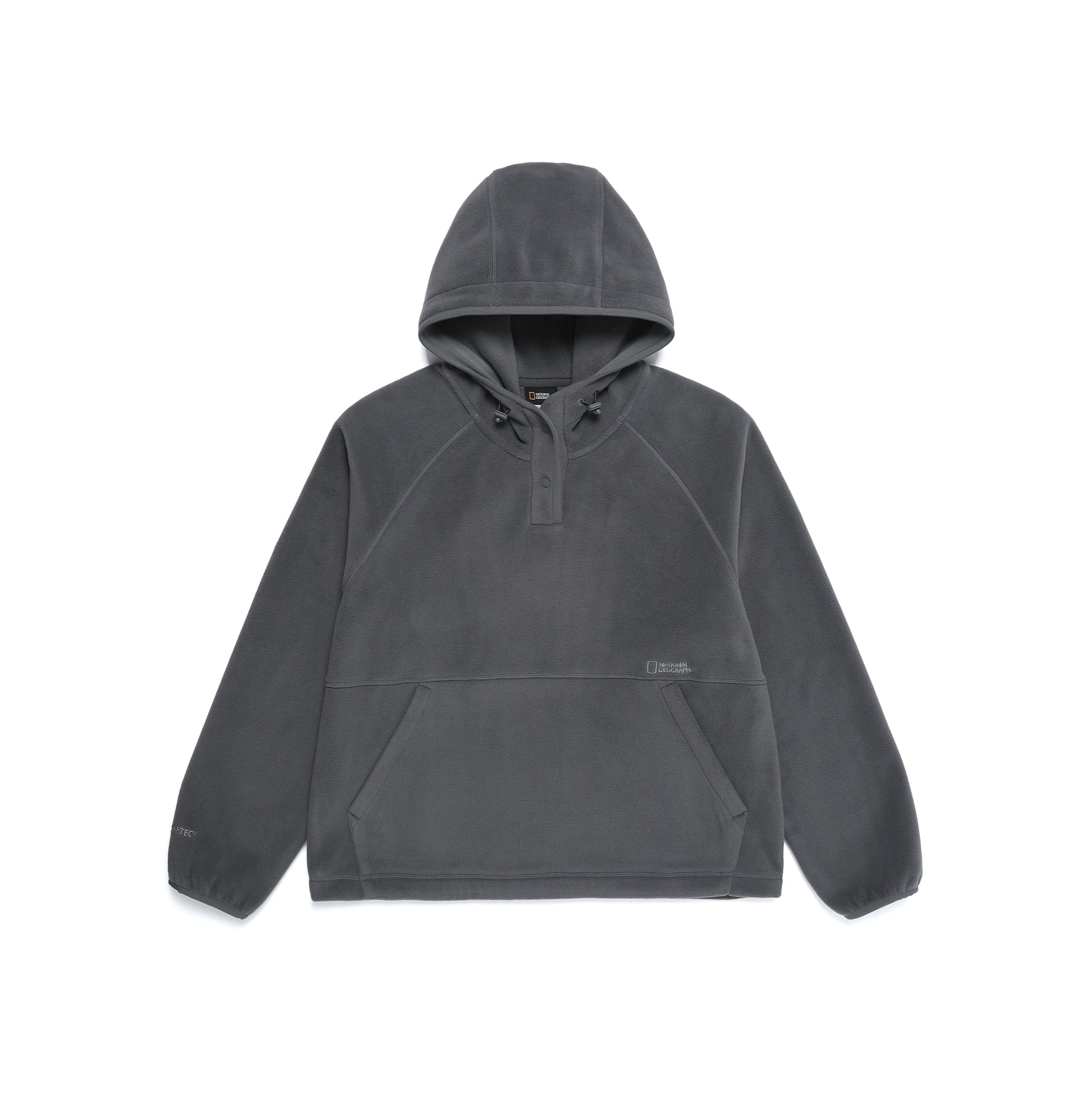 - Basic women’s fleece anorak hoodie crafted from POLARTEC® 200T fabric for superior warmth and comfort