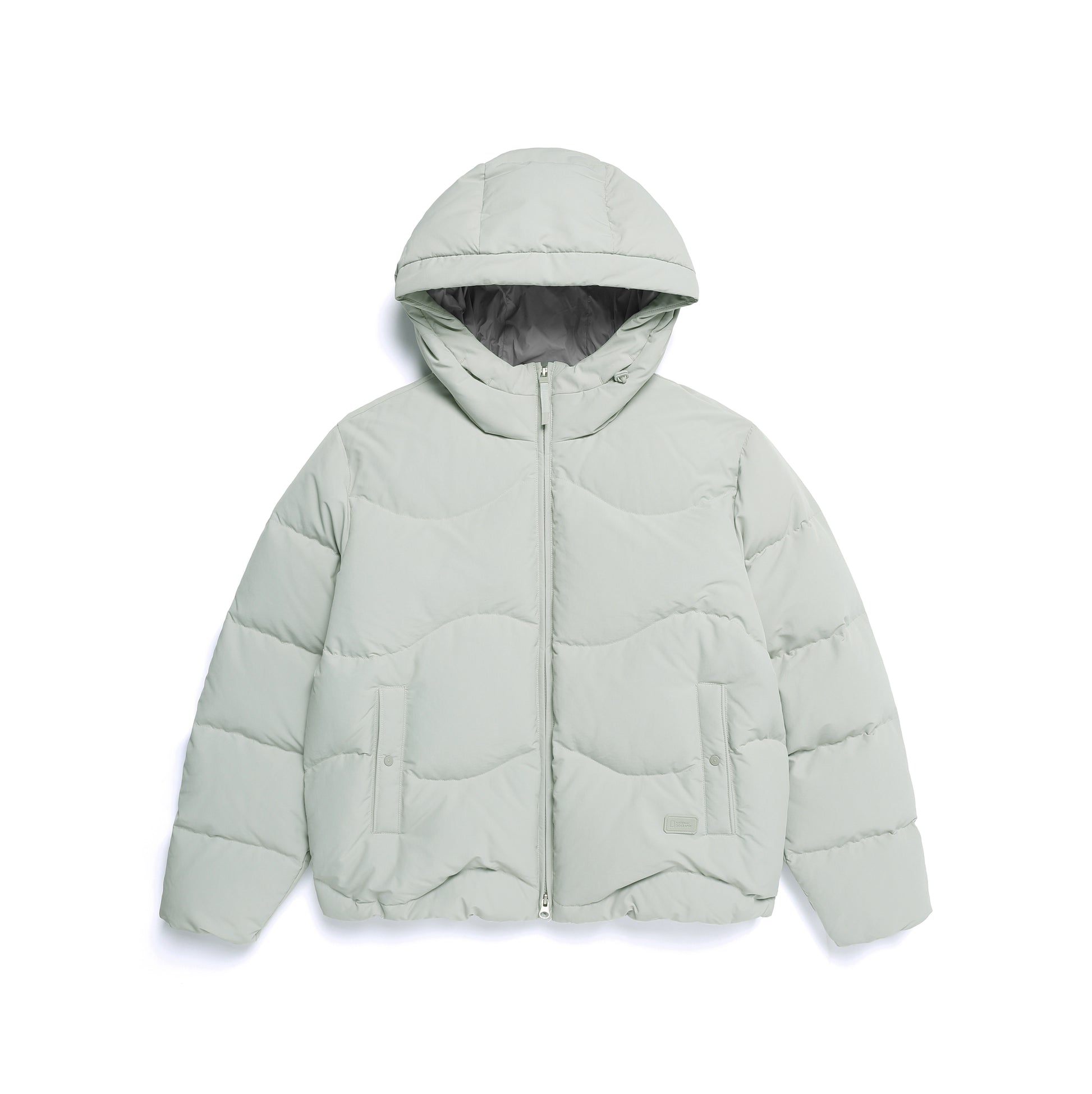 - Women’s hooded down jumper featuring wave-pattern stitching for a distinctive design accent